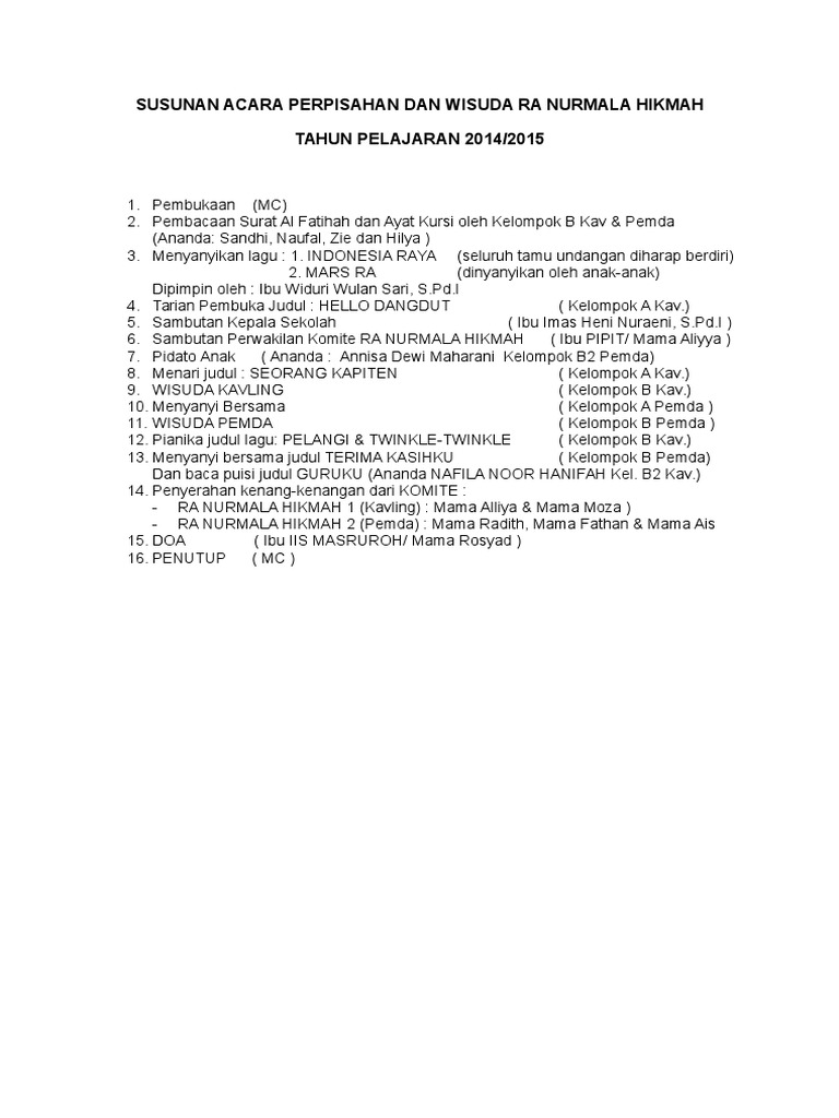 Contoh Susunan Acara Perpisahan Sekolah - Susunan Acara Perpisahan Kelas Ix Pdf - Maybe you would like to learn more about one of these?. Maybe you would like to learn more about one of these? Check spelling or type a new query. We did not find results for: Contoh susunan acara perpisahan sekolah.