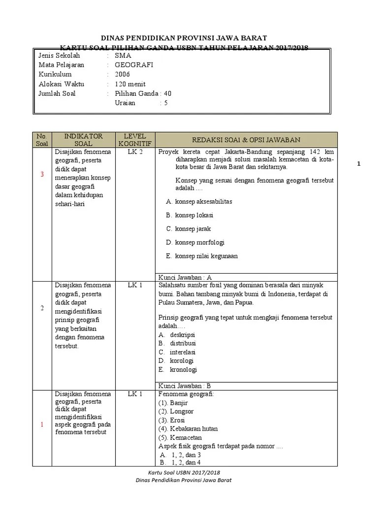 Soal Usbn Geografi Dengan Indikator / Contoh Soal Usbn Geografi Sma Dan Kunci Jawabannya Part 4 - Ada sekitar 45 butir soal (40 pg + 5 essay) usbn sejarah paket .